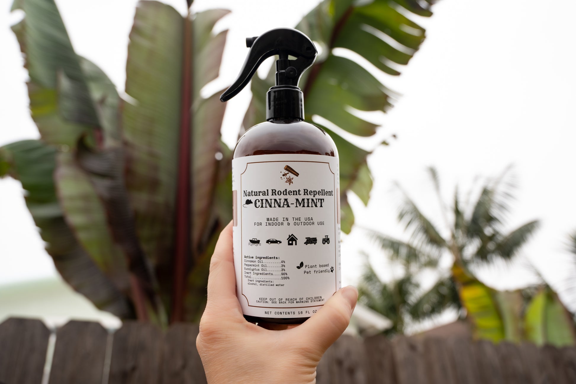 Our Cinna-Mint Rodent Repellent is a powerful blend of cinnamon and peppermint essential oils, formulated to help repel mice and rats without harmful chemicals. Handcrafted in small batches by PestProof Naturals, this clean, aromatic spray helps protect your home with the power of scent...no traps, no toxins, no worries. All natural pest control at its finest!